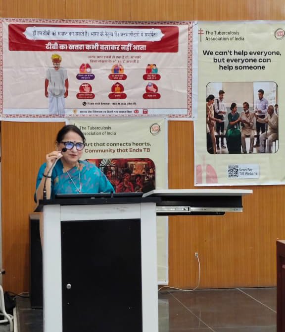 Medical Director Dr Meenakshi delivering Opening remarks on the occasion of World TB Day CME. At Dr Babasaheb Ambedkar Medical College and Hospital, Delhi
