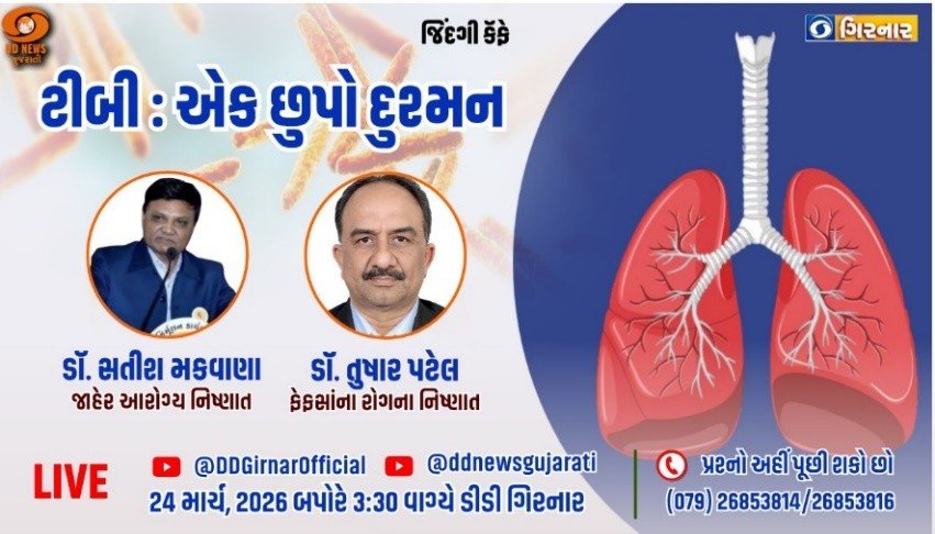 Satish Makwana former State TB Officer and Dr.Tushar Patel Sr.Chest Physician and Hon.Technical Advisor GSTBA & Hon.Sec. IMA Gujarat took part in TV Debate organized on DD GIRNAR on occasion of World TB Day on 24th March 2026.